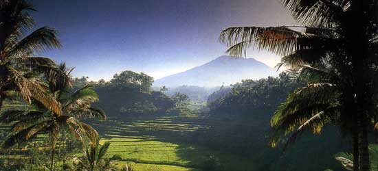 East Bali offers a different impression from the southern plains. It is a quiet country of authentic remains of old kingdoms, of ancient Bali Aga villages and secluded communities, where elegant customs, dress and ritual remain vital daily live. The town of Karangasem, now called Amlapura, is reached by driving east-ward from Denpasar through Gianyar and Klungkung. East of Klungkung landscapes are still blackened by the lava streams of the ‘63eruptions of Mt. Agung that destroyed and isolated one fifth of the island. Next you will visit the Scared Goa Lawah, the Bat Cave, with thousands of vibrating bats on its wall; you will pass the colourful outrigger pros that line the shore of Kusamba fishing village; Tenganan, an ‘Original’ Balinese community surviving from pre-Hindu times; and then after crossing the widest of lava streams, you enter the district capital of Amlapura to visit the Puri Agung and mooted water palace (which was heavily damaged by the eruption).